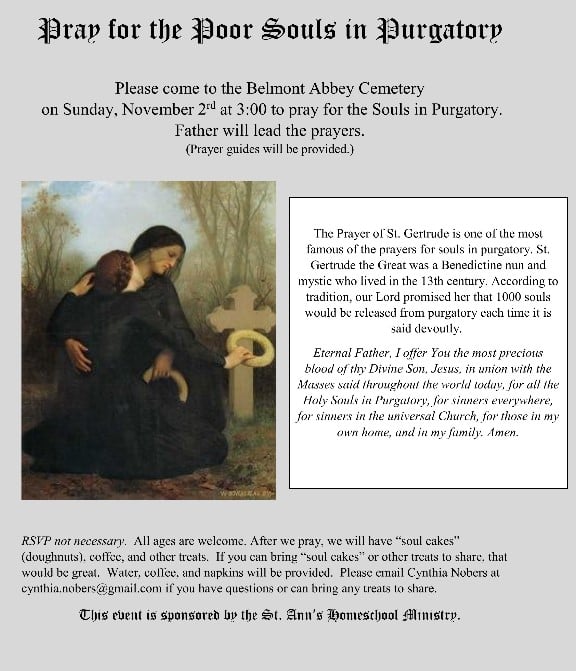 The Traditional Carmelite Hermits of Our Lady of Mt. Carmel (Colorado and Pennsylvania) are happy to announce an All Souls Enrollment during the month of November. Throughout this month, the community will dedicate 30 Holy Masses (Traditional Carmelite Rite), along with the daily prayers and sacrifices of the Brothers, for the souls of the faithful departed who are enrolled. You may recall their Lenten Enrollment offering each spring, and now they are offering an All Souls Enrollment for the faithful departed. To learn more or enroll, click here.
